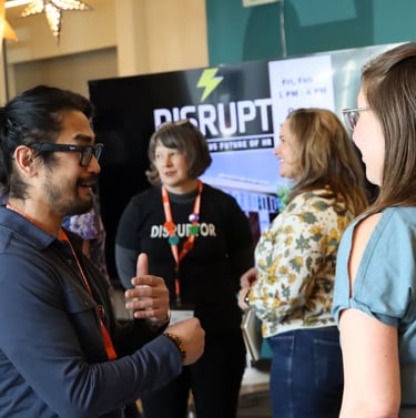 Get the chance to mingle with Speakers and fellow Disruptors & discuss your interests & passions (your favorite Podcast, Reads, hiking spots or ice cream flavor). Appetizers & Drinks provided.